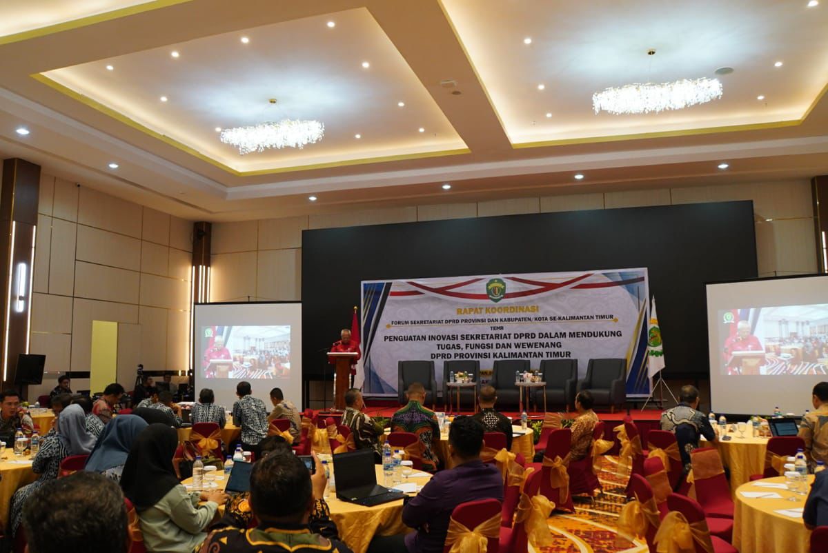 Dengan tema “Penguatan Inovasi Sekretariat DPRD dalam Mendukung Tugas, Fungsi, dan Wewenang DPRD Provinsi Kalimantan Timur”, Rakor dihadiri oleh Sekretaris DPRD dari 10 kabupaten/kota se-Kaltim, pejabat struktural, staf sekretariat, perangkat daerah terkait, hingga perwakilan dari Bappeda Kaltim.